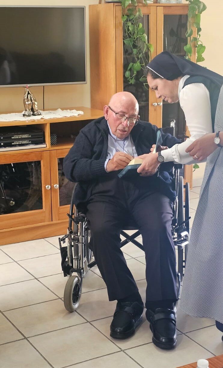 Outro momento muito especial foi o encontro com o Padre Luiz Butera, de 93 anos, sacerdote fundador do Mosteiro, cuja missão foi fundamental para a presença das irmãs em nossa cidade.